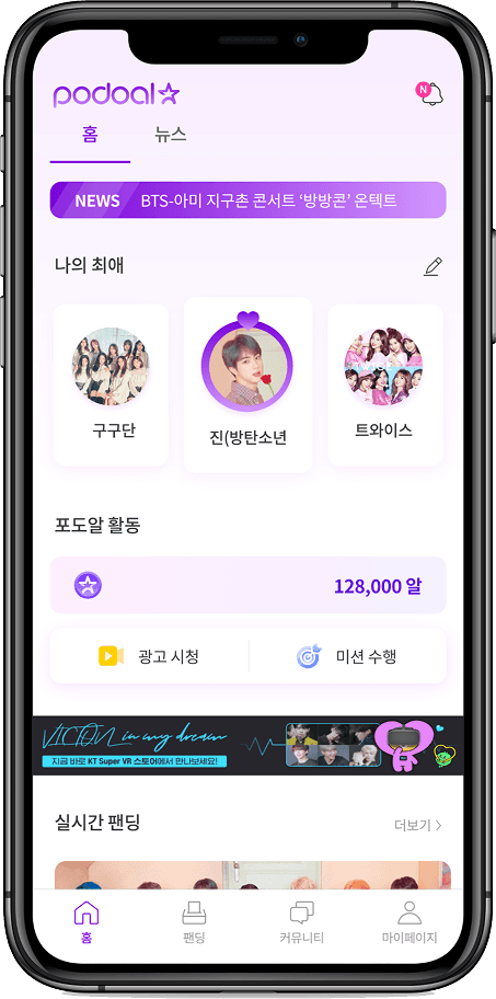 포도알은 내가 가장 좋아하는 아티스트를 알아가고, 좋아하고, 함께 성장시키며, 즐거움을 나누는 글로벌 팬덤 플랫폼입니다.